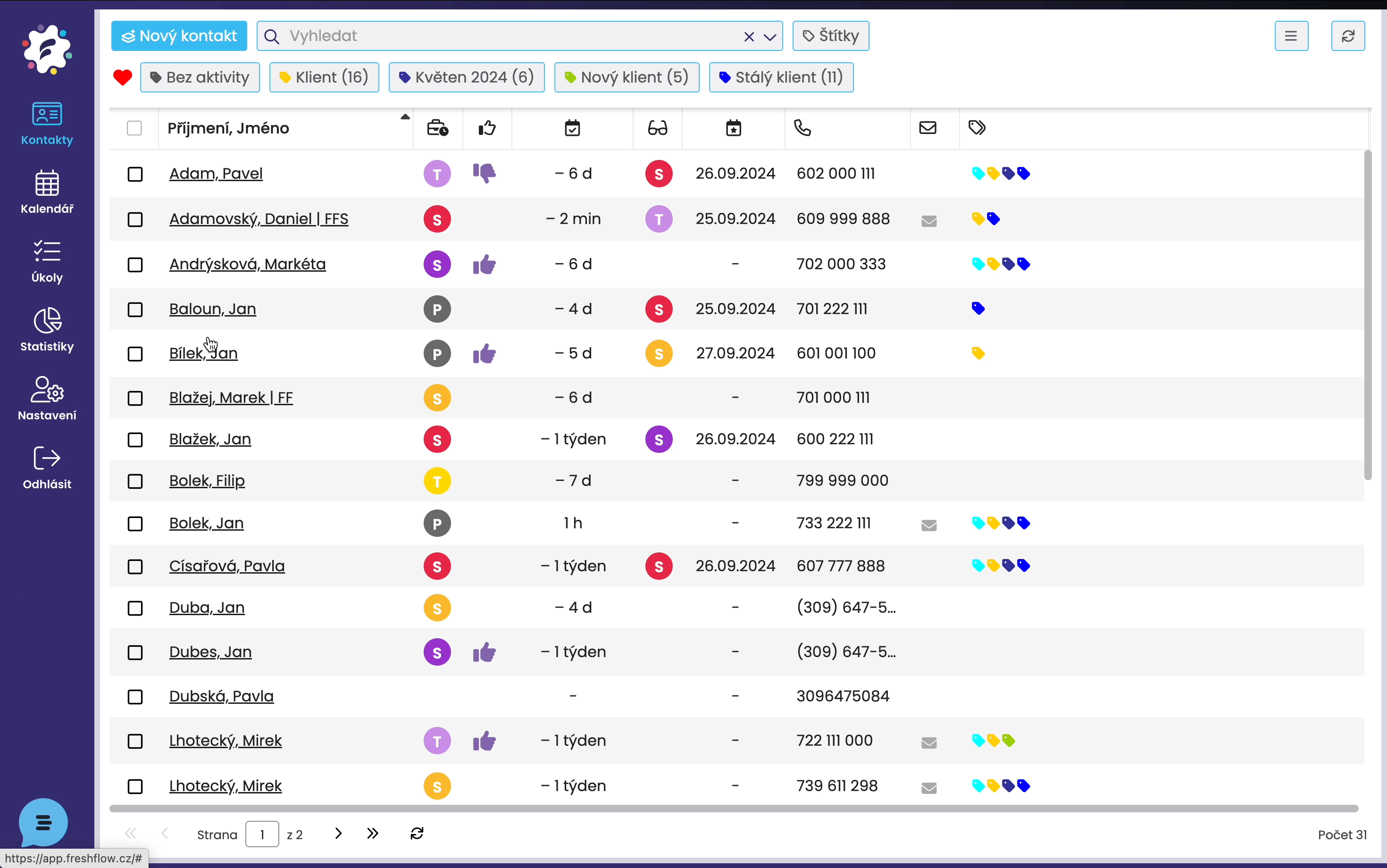 Přehled Vaší klientské databáze FreshFlow si můžete uzpůsobit přesně tak, aby přehled vyhovoval Vaší každodenní práci.