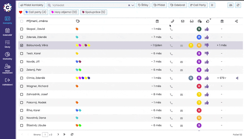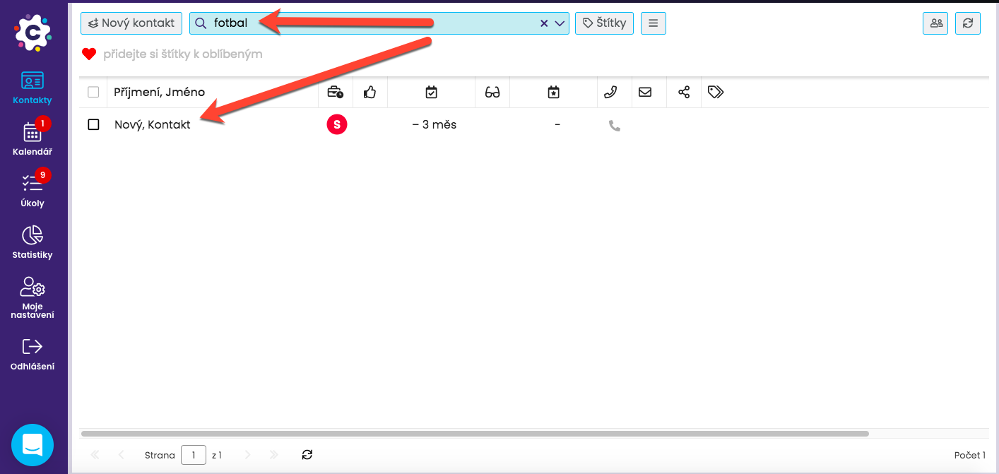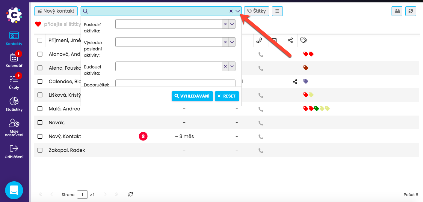 Jedním kliknutím na štítek si potom jednoduše vyfiltrujete kontakty daným štítkem označené. Výběr můžete udělat i použitím více štítků najednou.
