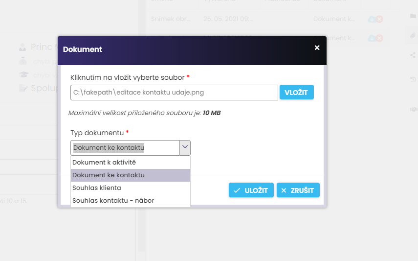 7. Vkládání souborů ke kontaktu