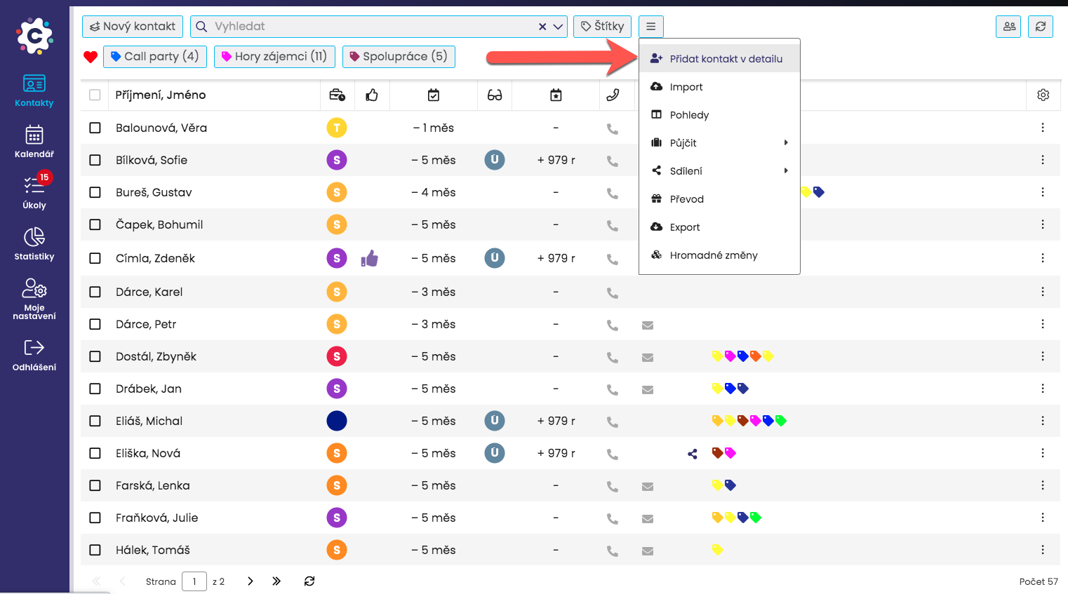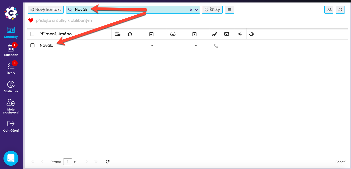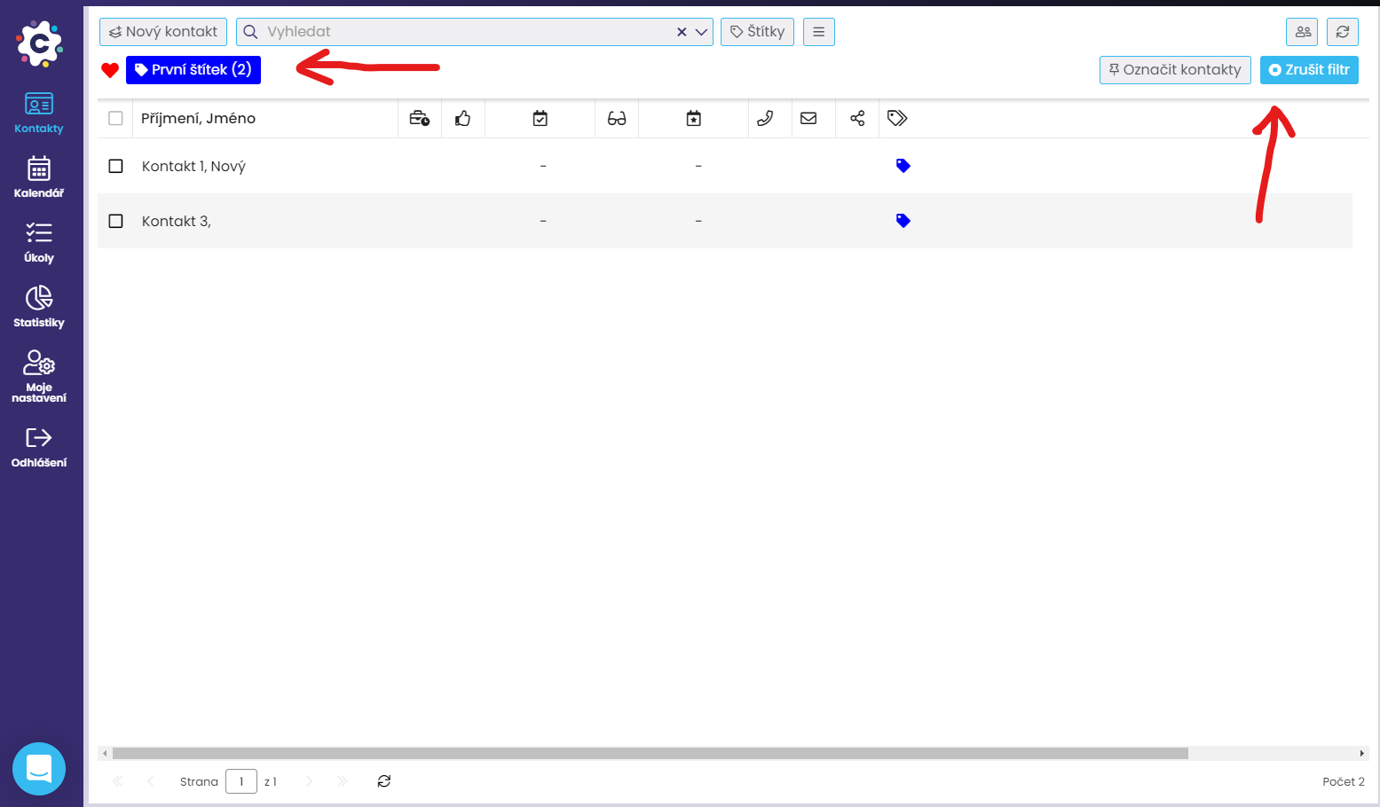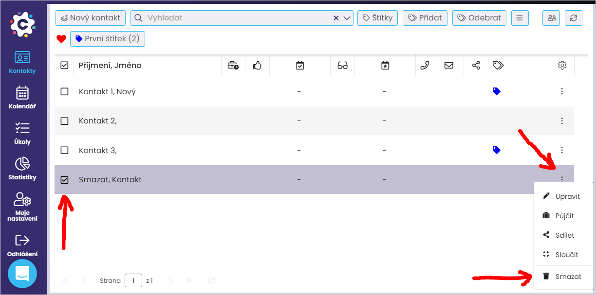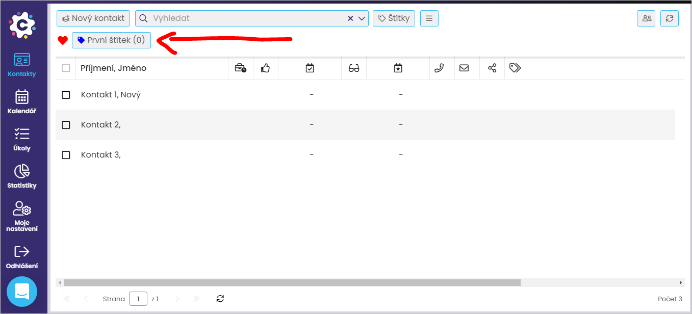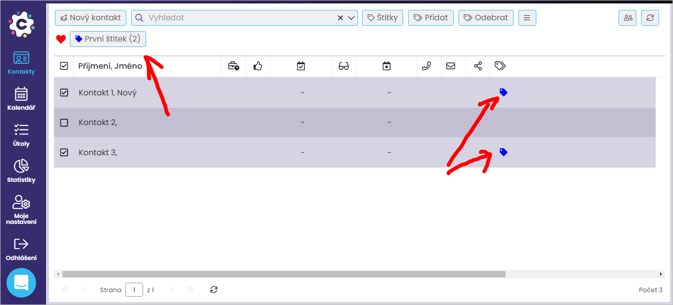 Kontakty můžete oštítkovat dvěma způsoby: buď hromadně (zrychleně) nebo jednotlivě z detailu kontaktu.