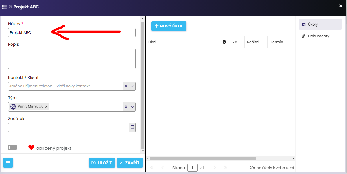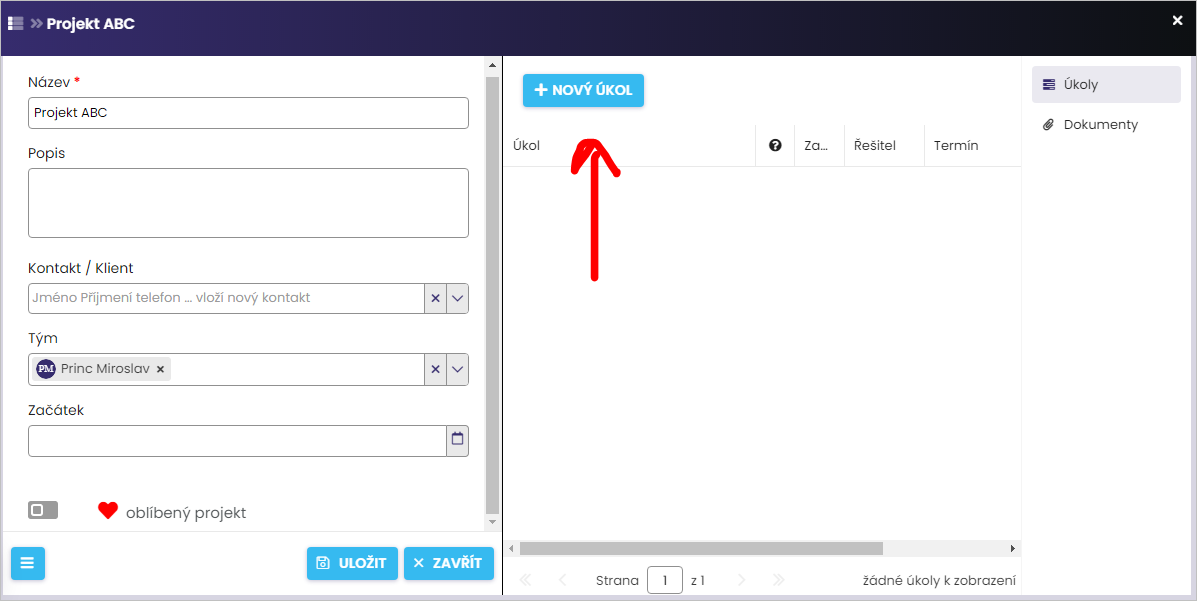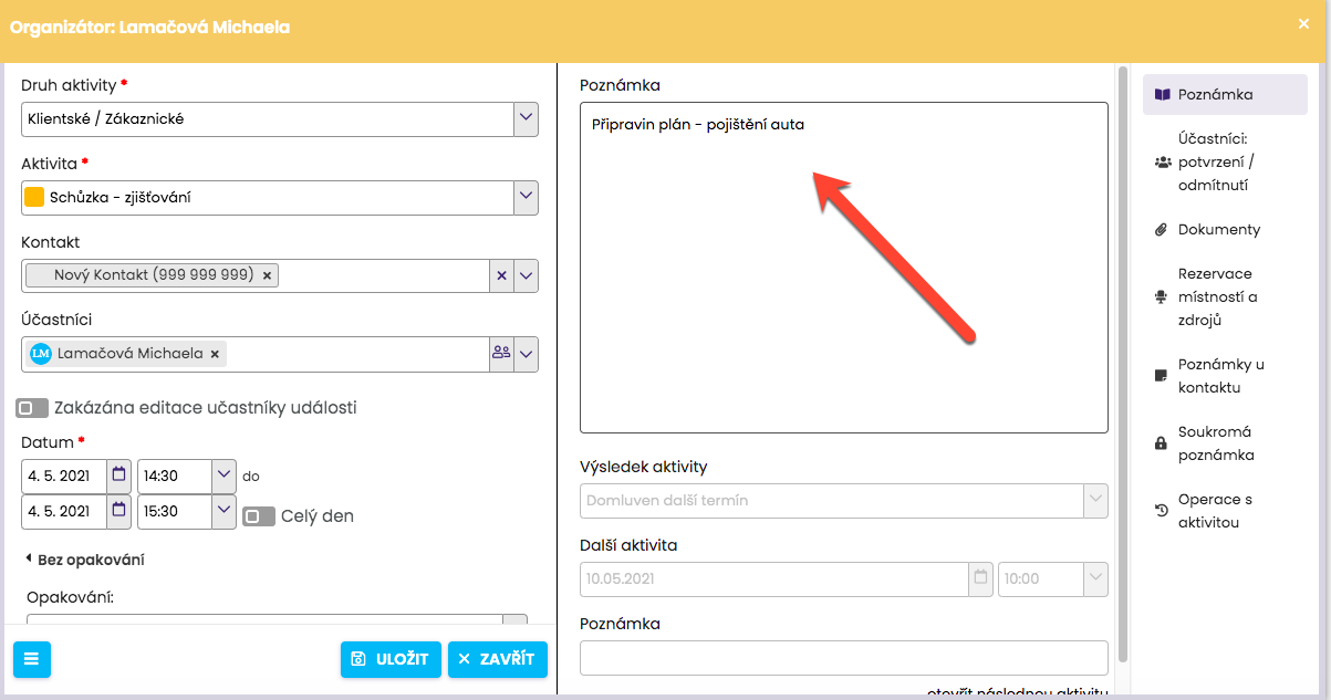 6. Zakládání nových událostí, úkolů a projektů u kontaktu