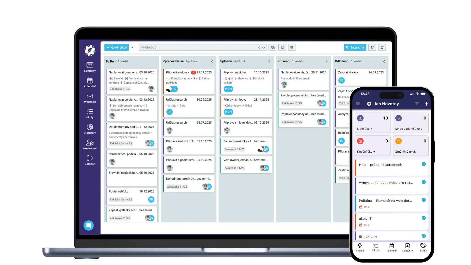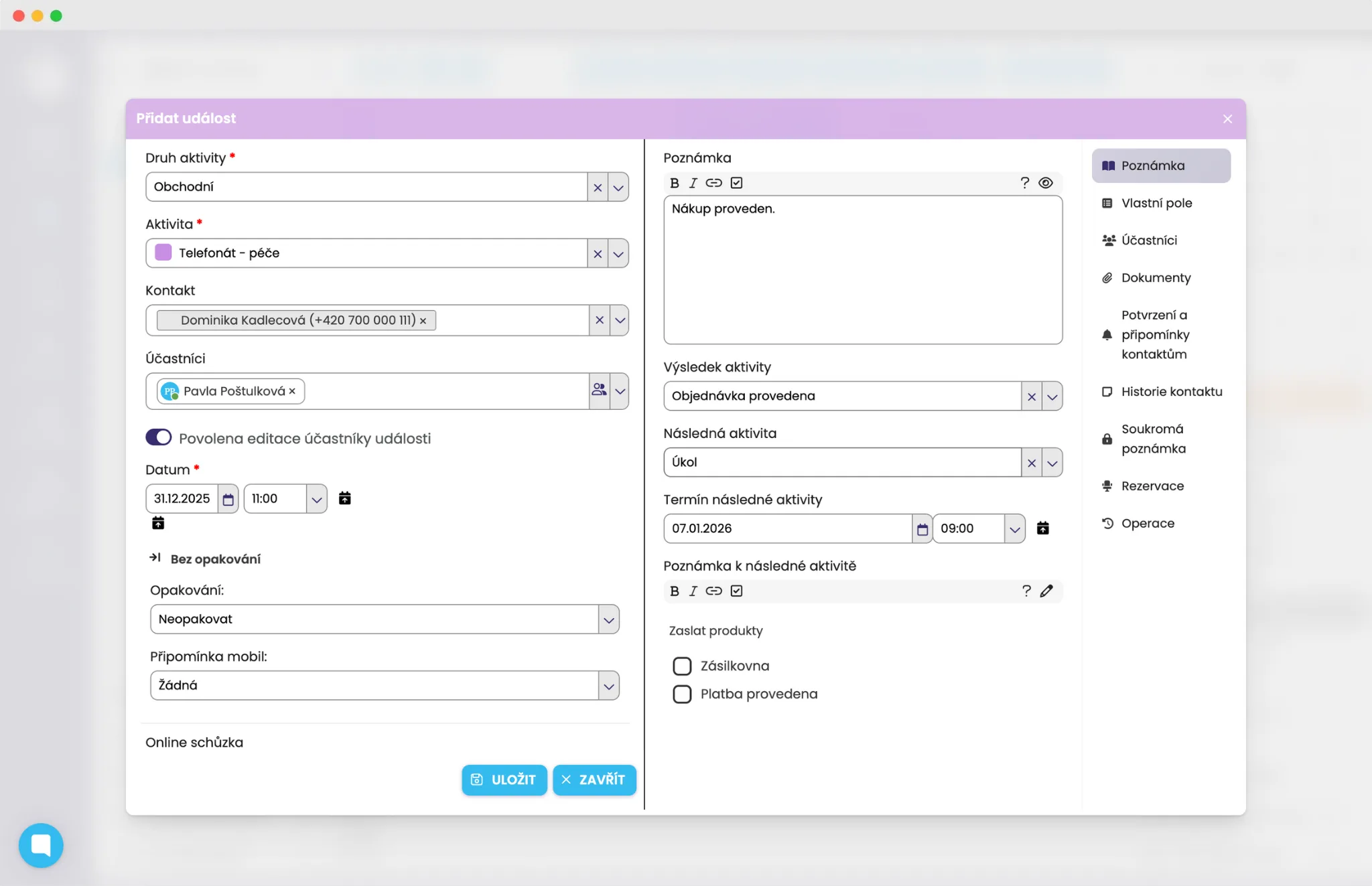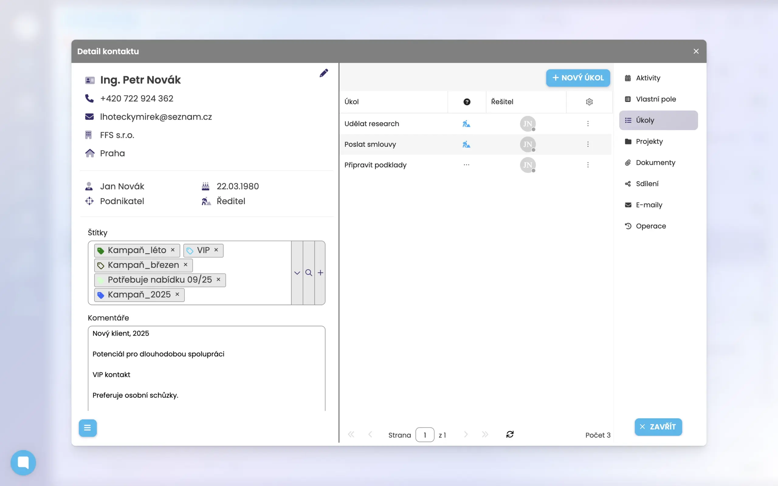 Každý úkol nebo projekt můžete přiřadit ke konkrétnímu kontaktu. Vše se pak automaticky eviduje v CRM v kartě klienta