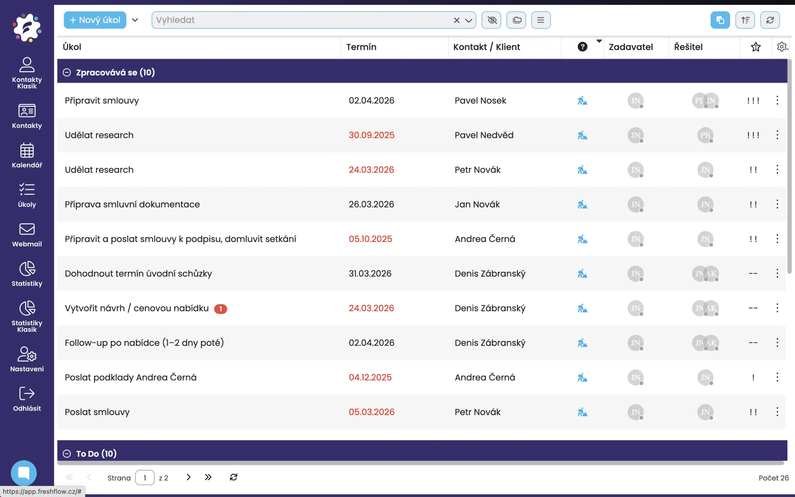 Úkoly ve FreshFlow jsou propojené s kalendářem a lze je navázat na konkrétní události formou následných aktivit