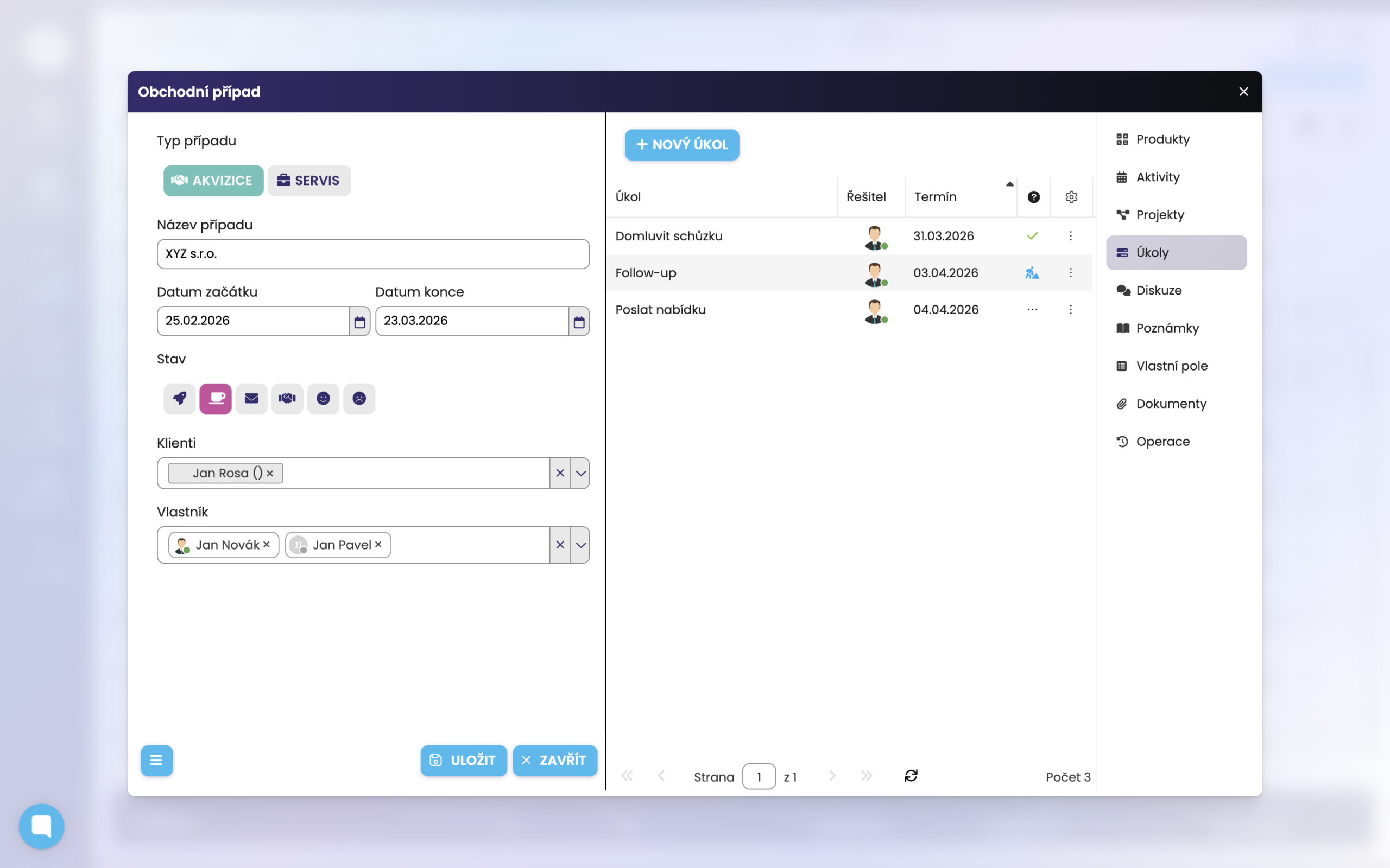 Správa úkolů a projektů pro podporu řízení obchodních aktivit