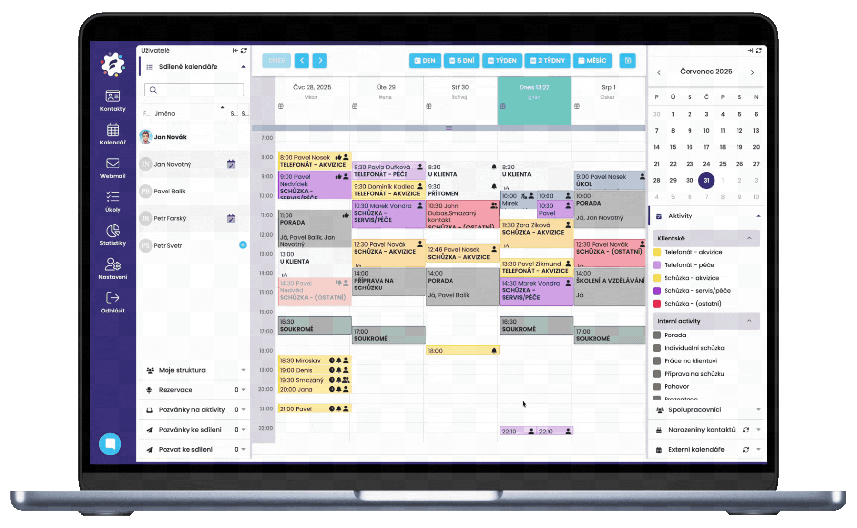 Calendarul partajat include tot ceea ce sunteți obișnuit — suprapunerea mai multor calendare, ascunderea anumitor activități, trimiterea de mementouri clienților sau atribuirea de resurse unor sarcini specifice.