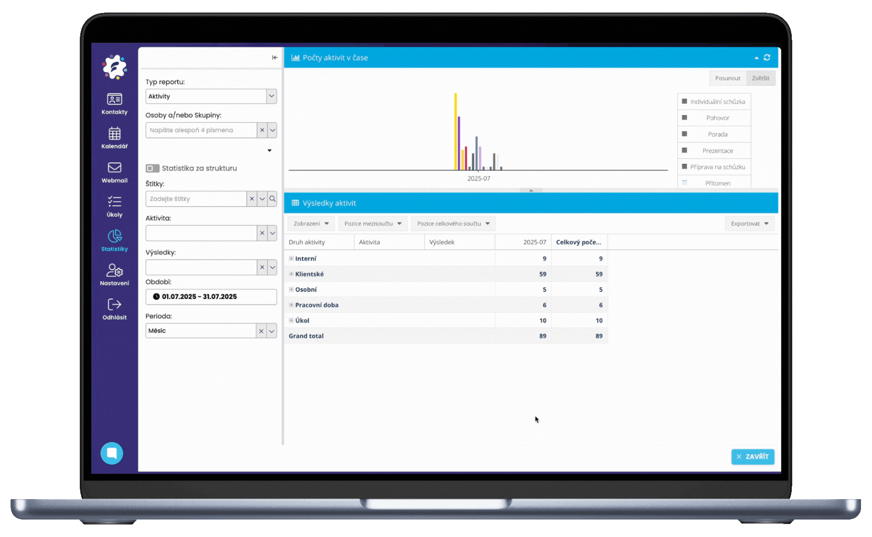 Pe măsură ce înregistrați activități, sistemul generează automat statistici clare, în timp real: cine a făcut ce, când, care au fost rezultatele și cât de reușit este fiecare tip de activitate.