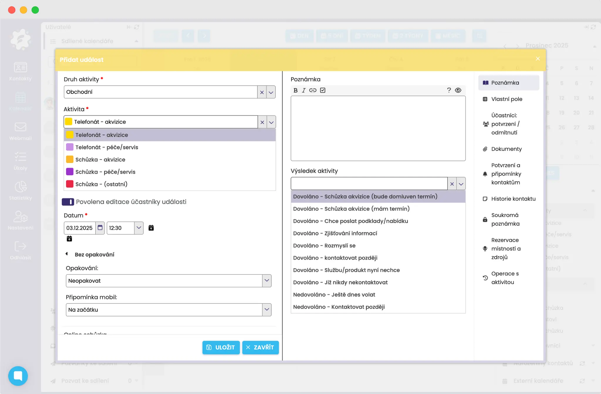 Všetko je priamo prepojené s predchádzajúcou aktivitou a zapísané v zdieľanom kalendári, ako aj v karte kontaktov (alebo dokonca v úlohách).