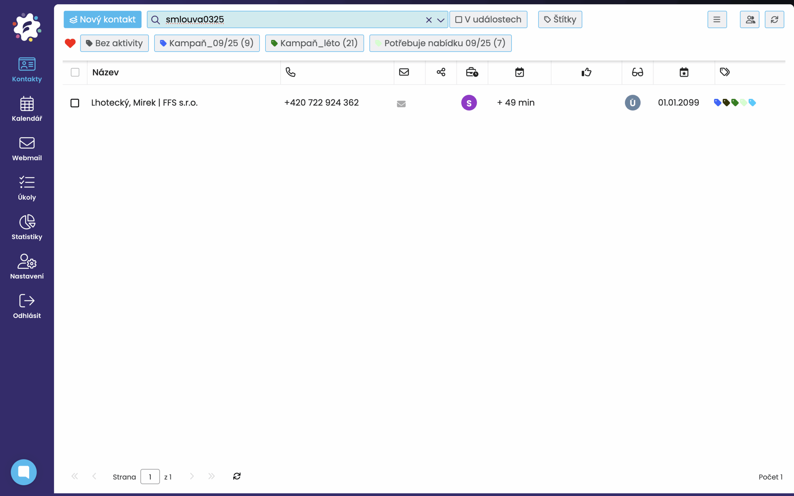 Fulltextové vyhľadávanie umožňuje rýchlo a jednoducho zistiť všetko, čo potrebujete. Napríklad všetky kontakty s kľúčovým slovom „zmluva“.